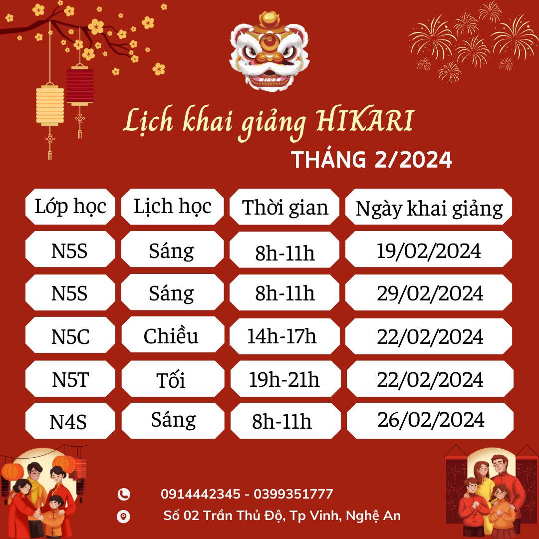 [ HIKARI - LỊCH KHAI GIẢNG LỚP TIẾNG NHẬT THÁNG 2 ]